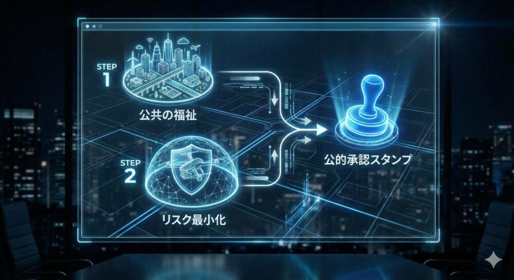 この構造を理解すれば、私たちが申請書で証明すべきことは「絶対に墜落しないこと(悪魔の証明)」ではないことがわかる。「私たちのドローン飛行がもたらす『公共の福祉(社会的利益)』は、想定される『リスク』を、適切な安全措置によって許容範囲内に抑え込めるほどに大きい」という比較衡量のロジックを構築することなのだ。