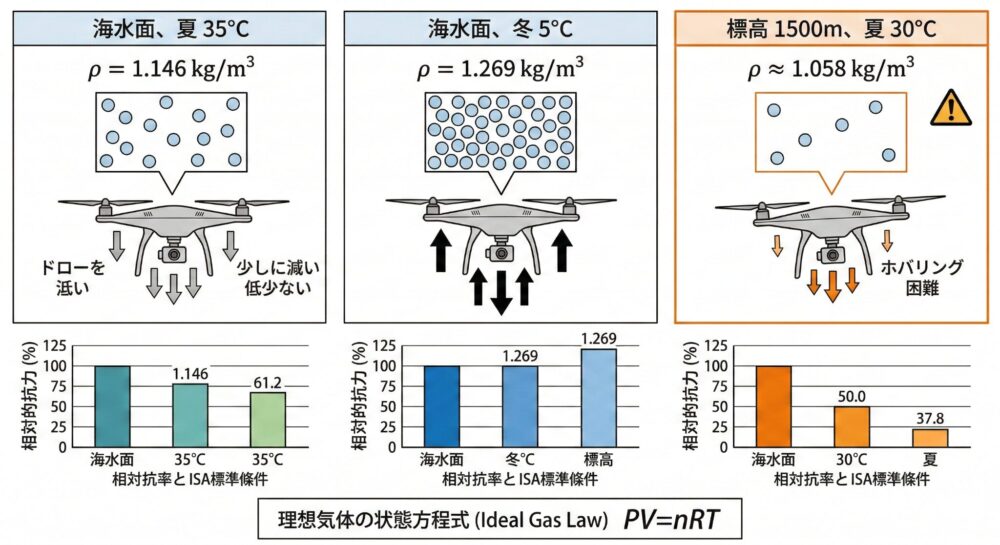 推力計算式 T = CT ・ρ n2 D4 において、ρは環境条件によって刻々と変化する。