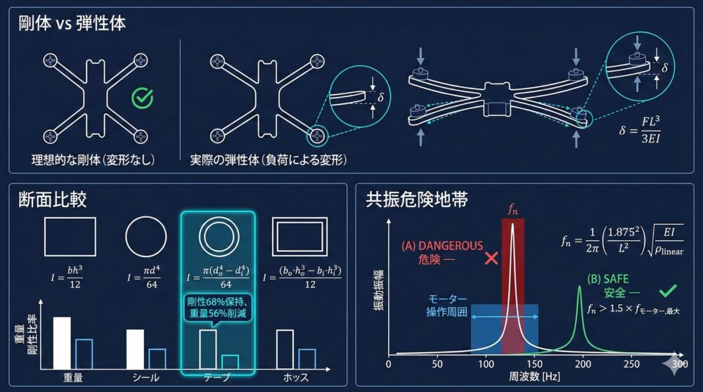 3. 【メカニズムの解説】剛体モデルから弾性体モデルへ——ドローンフレームの「本当の姿」