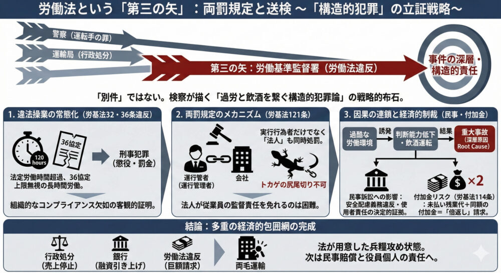 検察側がこの労働法違反を重視する理由は、単なる罰金刑の確保だけではない。彼らは、「過酷な労働環境が正常な判断能力を奪い、飲酒運転という逸脱行為を誘発した」というストーリー、すなわち事故の深層原因(Root Cause)を法的に構成しようとしているのである。