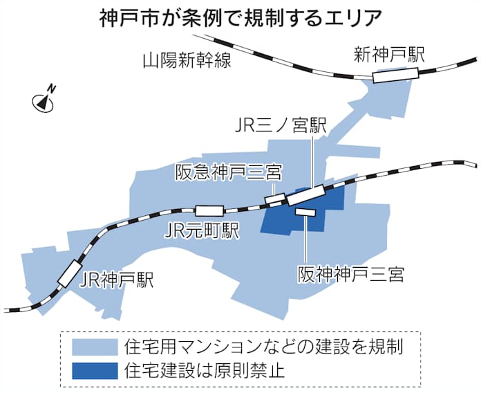 規制対象エリアは、三宮や元町などの中心部です。これらの地域は、神戸市の商業と文化の中心地であり、規制の影響が大きいとされています。
